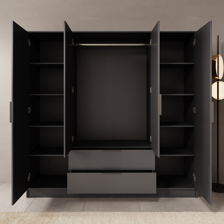 • Kellan - Kledingkast 4-deurs - Grijs - 206x51x200 cm