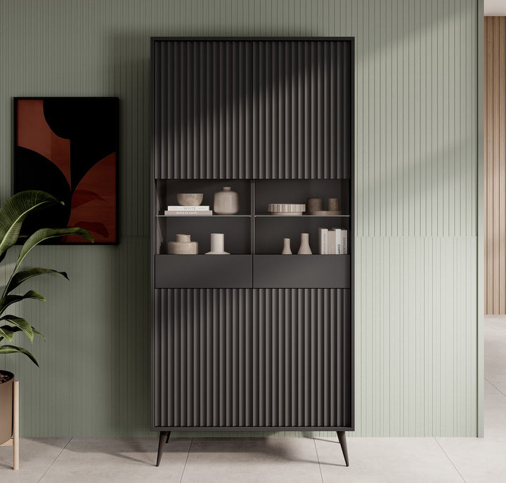 • Leroy - Vitrinekast - Zwart - 114x40x161 cm