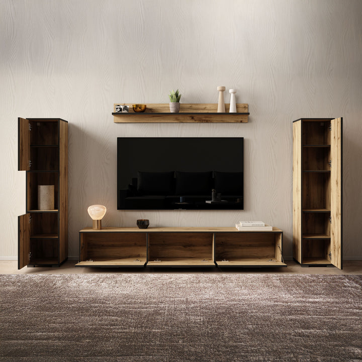 • Emerson - Wandmeubel - Zwart/eiken - 205x42x173 cm